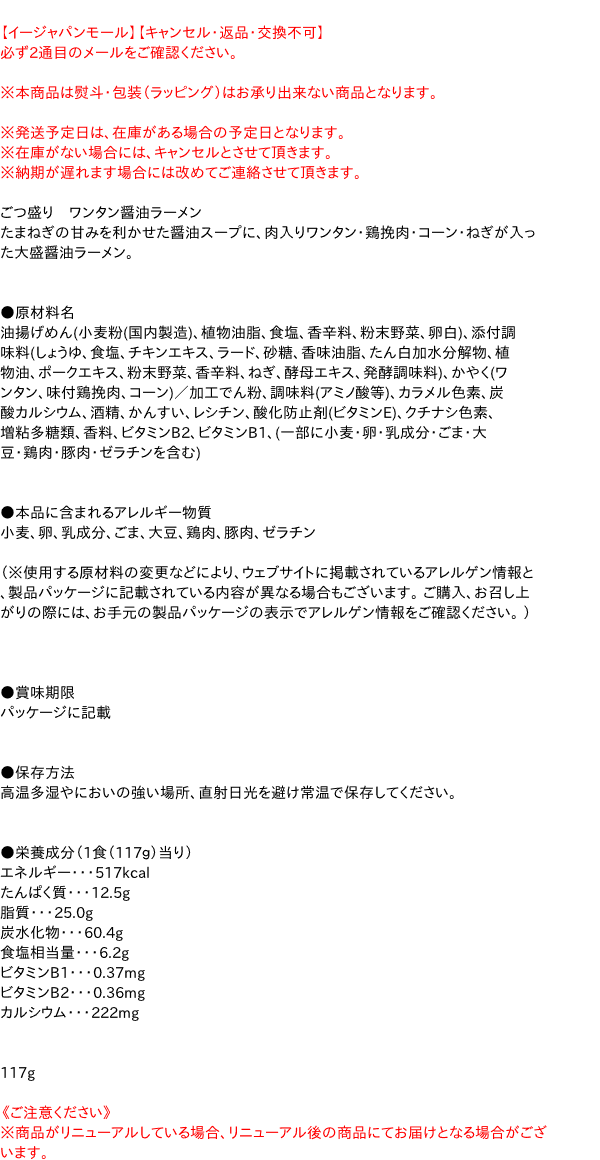 東洋水産 マルちゃんごつ盛りワンタン醤油ラーメン117g ×12個 はコチラ >>【イージャパンショッピングモール】内のみのお買い物は、送料一律でどれだけ買っても同梱する事が出来ます。