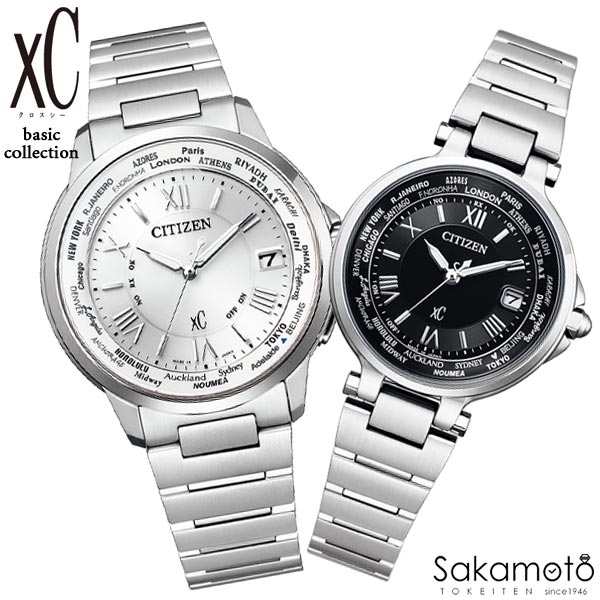 国内正規品 CITIZEN シチズン xC クロスシー basicコレクション ハッピーフライト エコ・ドライブ電波時計 ワールドタイム 腕時計 ウォッチ PAIR ペア カップル【CB1020-54A&EC1010-57F】