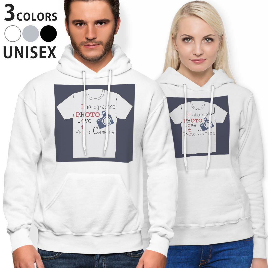 パーカー 男女 メンズ レディース 長袖 ホワイト グレー ブラック デザイン 150 S M L XL 2XL parker hooded sweatshirt フーディ 白 黒 灰色 014802 カメラ 英字 イラスト 服
